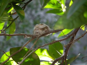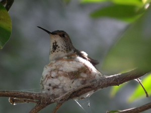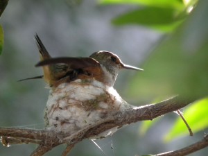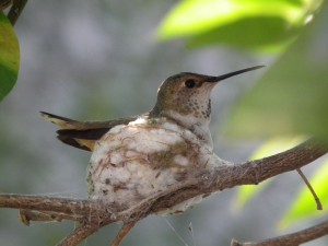 Friday afternoon, February 21st, 2014. The Allen’s hummingbird is almost done building her nest.